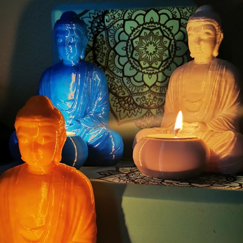 Подсвечник Будда для чайных свечей. Напечатанный на ЗD принтере. Материал пластик. Принесет уют в ваш дом, а также принесет спокойствие и радость. Рекомендуется использовать для медитации.