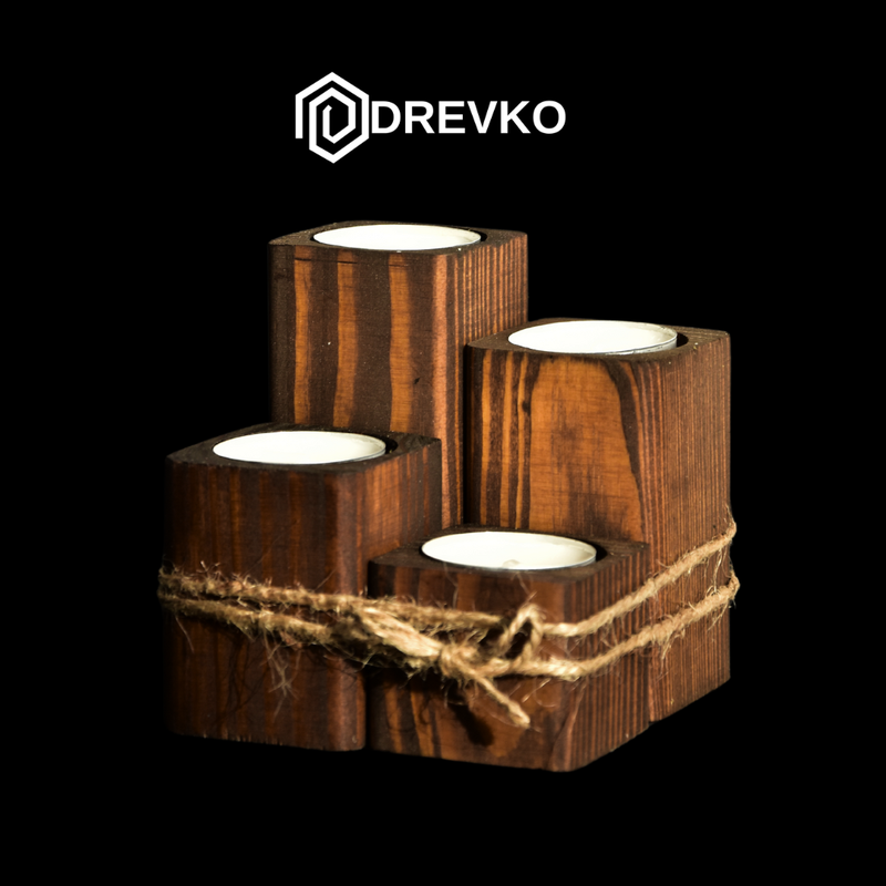 Набір дерев'яних підсвічників "Арія" в кольорі Палісандр 🌿 Стильний декор для вашого дому Пропонуємо набір із 4-х елегантних підсвічників, виготовлених із натуральної сосни, покритих оливковою олією для збереження природної текстури дерева. 🔥 Комплектація: - 4 підсвічники різної висоти: 40 мм, 60 мм, 80 мм і 100 мм. - Кожен має розмір основи 50×50 мм. - У комплекті 4 чайні свічки (d=40 мм). - Декоровані натуральним джутовим шнуром для затишної атмосфери. ✨ Ідеально підходить для: ✔ Створення романтичної атмосфери ✔ Декору оселі у стилі бохо, лофт, скандинавському ✔ Подарунку на свята та особливі події 🚚 Відправка по Україні. Можливий самовивіз або доставка поштою. 💬 Пишіть у повідомлення, будемо раді відповісти на всі запитання! 😊