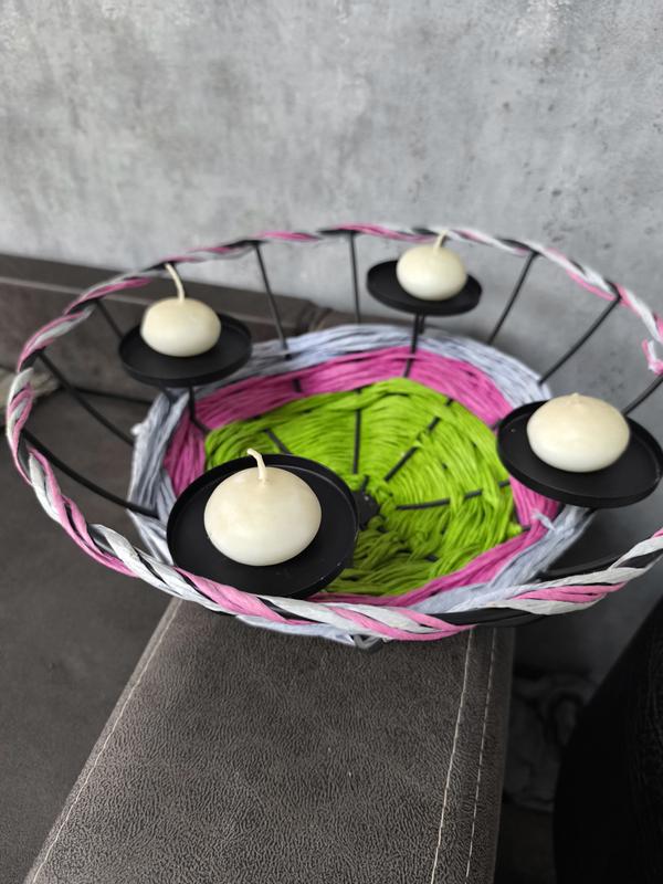 Продается металлический подсвечник на 4 свечи Декоративный элемент для дачи, беседки или интерьера. Очень красиво смотрится в вечернее время, создает уютную атмосферу. На круглой основе. Диаметр - 34 см. Рассчитан на 4 свечи.