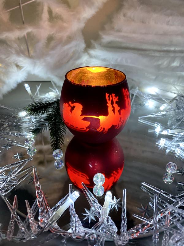 ⚜️ Різдвяний скляний свічник "La Vida" із зображенням Санти та оленів. У чудовому вінтажному стані: без сколів та тріщин. Цей чудовий різдвяний свічник мрійливо світиться при запаленні свічки. Романтична прикраса для холодних адвентських вечорів та святкової різдвяної атмосфери. 🛎️В наявності.