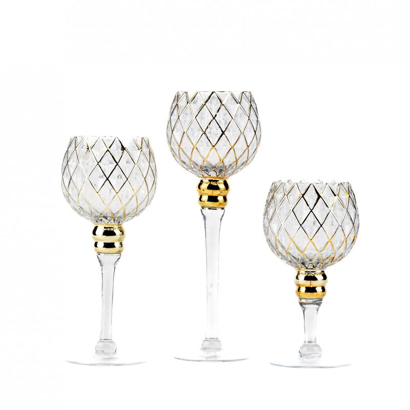 Набір свічників із 3 штук 30 см,25 см, 20 см Unicorn Studio 12006-009 матеріал — скло Висота — 30 см, 25 см і 20 см. фірма Unicorn Studio Настільний набір свічників для декорування містить 3 практично ідентичні аксесуари різної висоти: 30 см, 25 см, 20 см. Вони можуть використовуватися не тільки спільно, але й окремо. Висока, тонка ніжка робить свічкові підставки витонченими та компактними. Вони здаються майже невагомими та не займають багато місця. Завдяки відтінковому відтінку предмети мають дуже ошатний та стильний вигляд. Такі свічники стануть прикрасою святкового столу на весілля, на званій вечері, на дні народження й на тематичному святі, наприклад, Нового року. Чудовий товар для декораторів, адже прикрасить і фотозону, і святковий стіл.