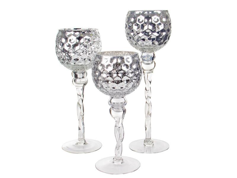 Набір свічників із 3 штук 40 см, 35 см, 30 см Unicorn Studio 811-021 матеріал — скло фірма Unicorn Studio Настільний набір свічників для декорування містить 3 практично ідентичні аксесуари різної висоти: 40 см, 35 см, 30 см. Вони можуть використовуватися не тільки спільно, але й окремо. Висока, тонка ніжка робить свічкові підставки витонченими та компактними. Вони здаються майже невагомими та не займають багато місця. Завдяки відтінковому відтінку предмети мають дуже ошатний та стильний вигляд. Такі свічники стануть прикрасою святкового столу на весілля, на званій вечері, на дні народження й на тематичному святі, наприклад, Нового року. Чудовий товар для декораторів, адже прикрасить і фотозону, і святковий стіл.