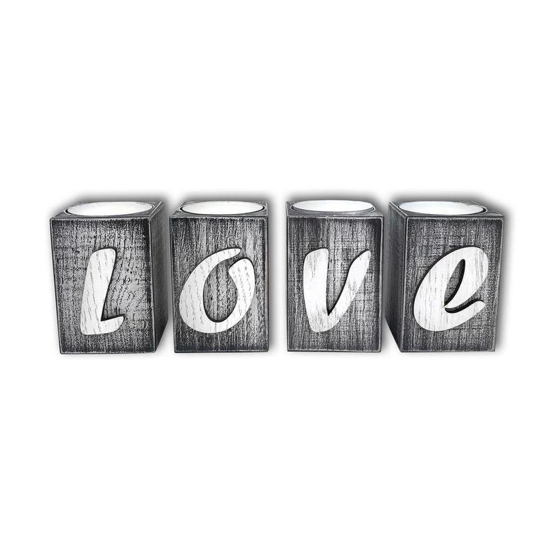 Набір підсвічників дерев'яних "love" сірий вінтаж 6х4х4 см