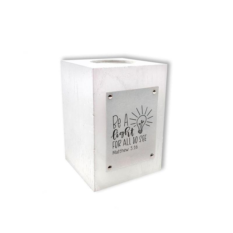 Дерев'яний підсвічник з металевою вставкою білий 6х9х6 см be a light for all to see хрпмд0...