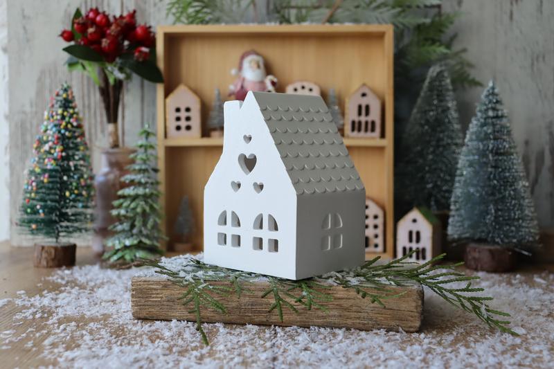 Скандинавський будиночок білого кольору з лел-свічкою в подарунок