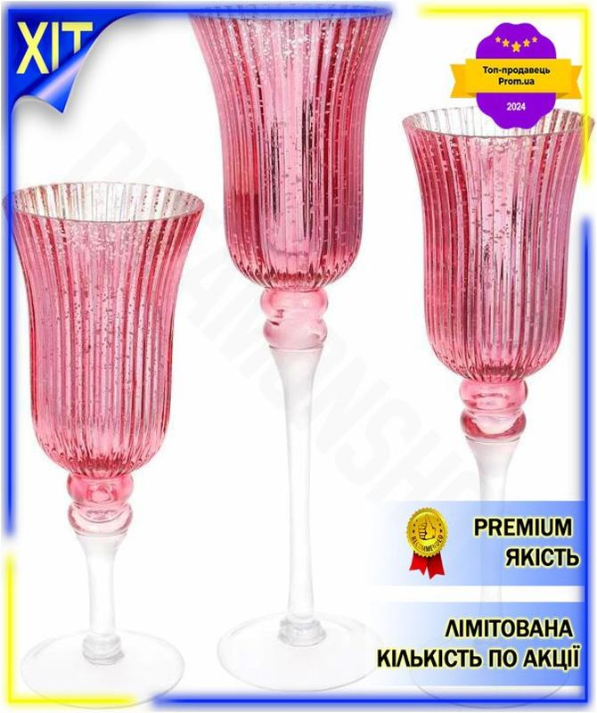 Dm набір скляних свічників специфікація 2.2 preeti 3 штуки рожеві зі сріблом для декору ін...