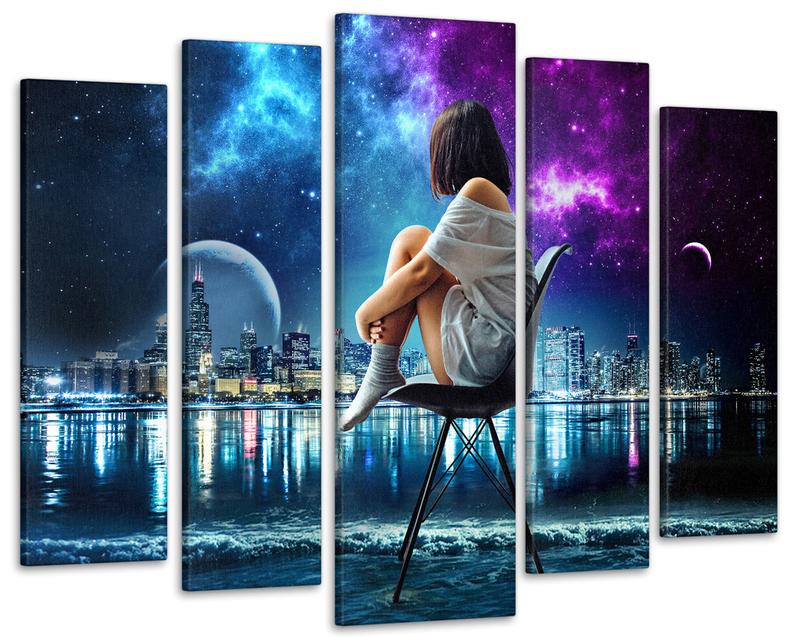 Модульная картина в гостиную / спальню взгляд на город art-374_5 ( 80х118см ) с лаковым по...