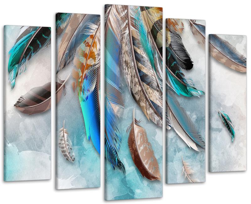 Модульна картина у вітальню / спальню абстракція кольорові пір'я art-444_5 ( 80х118см ) з...