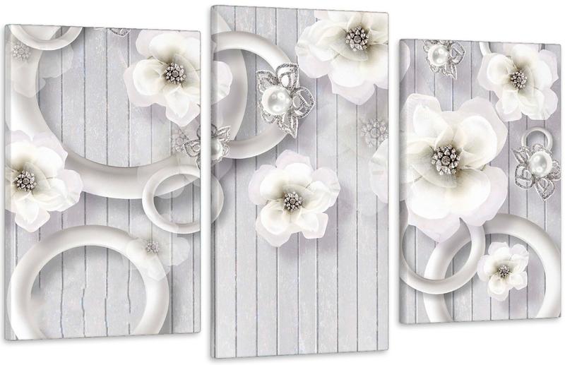 Модульная картина в гостиную / спальню білі квіти art-528_3 с лаковым покрытием