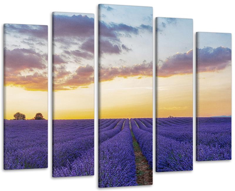 Модульна картина у вітальню / спальню лавандове поле світанок art-391_5 ( 80х118см ) з лак...