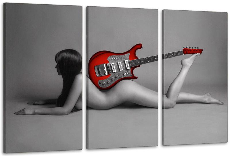 Модульна картина у вітальню/ спальню дівчина з гітарою art-271_3a з лаковим покриттям
