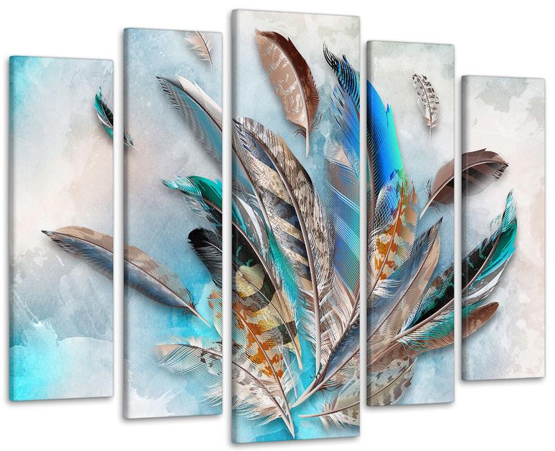 Модульна картина у вітальню / спальню абстракція кольорові пір'я art-452_5 ( 80х118см ) з...