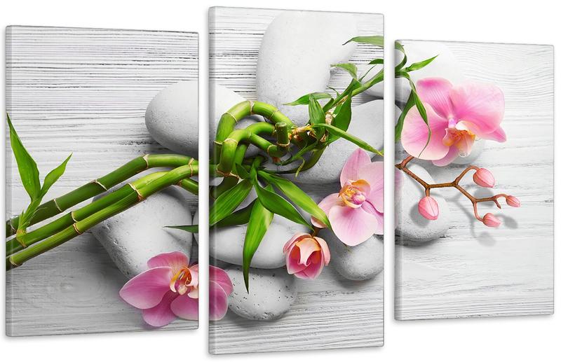 Модульная картина в гостиную / спальню бамбук з орхідеєю art-580_3 з лаковим покриттям