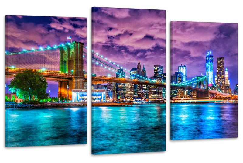 Модульная картина в гостиную / спальню манхетенський міст нью-йорк art-653_3 з лаковим по...