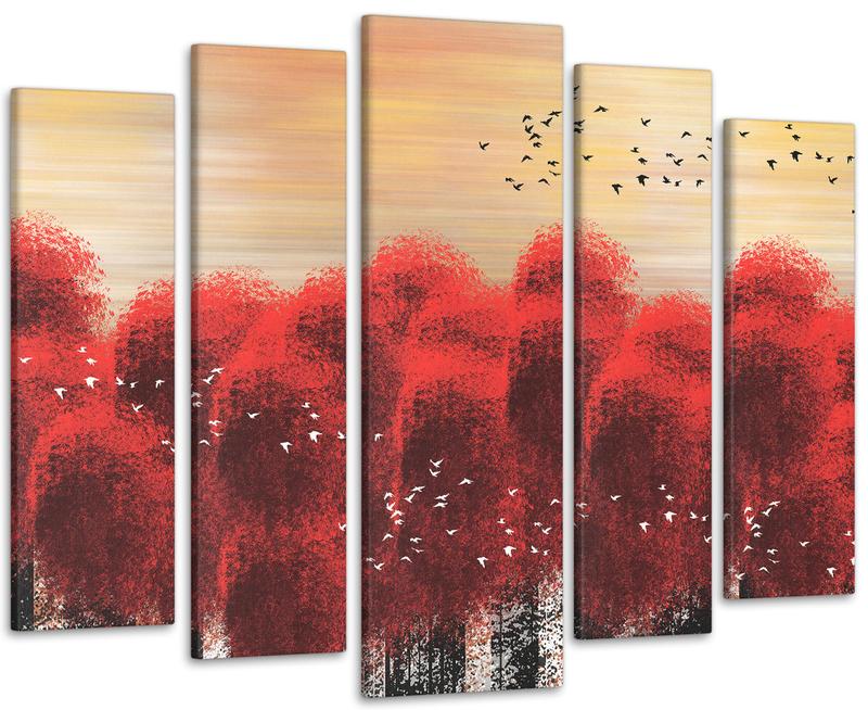 Модульна картина у вітальню / спальню абстракція дерева червоні art-445_5 ( 80х118см ) з л...