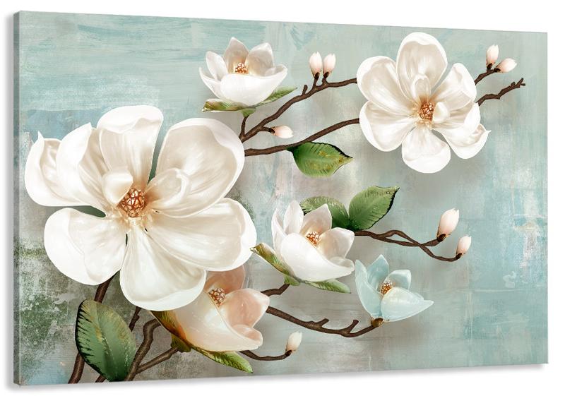 Картина холст в гостиную / спальню білі квіти mlp_117