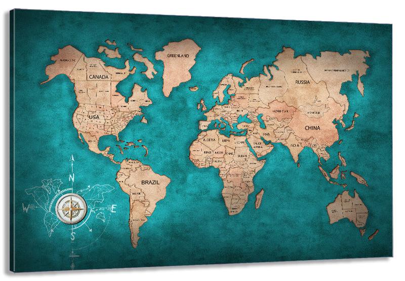 Картина холст в гостиную / спальню мапа світу mlp_263