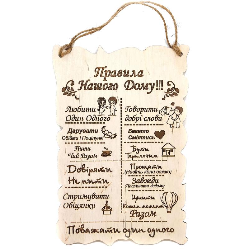 Правила нашого дому 30х20 см 12 правил дерев'яна табличка-постер