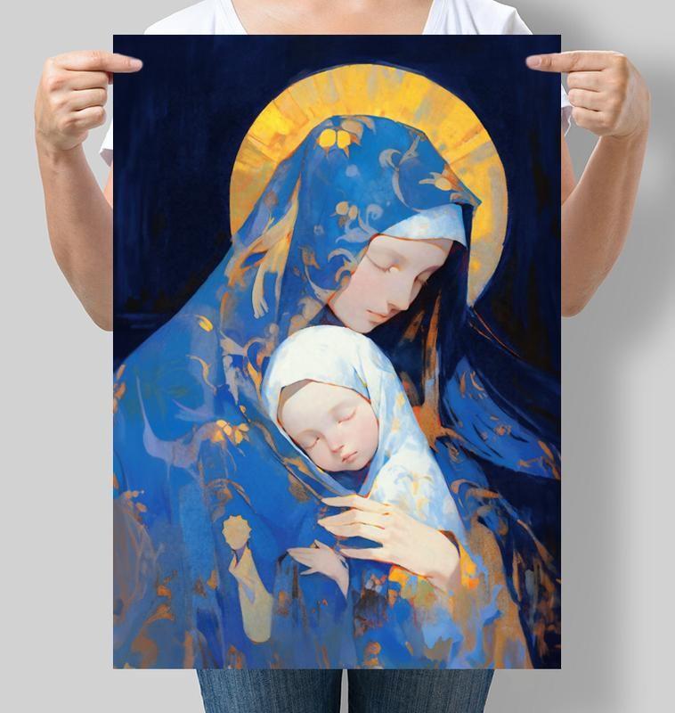 Плакат богородиця з дитям в жовто-синіх кольорах