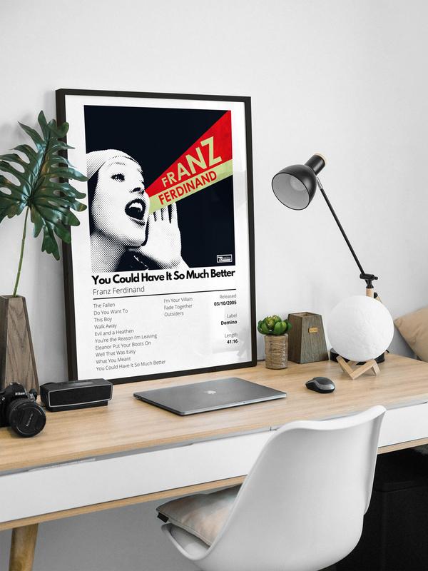 Постер альбому Franz Ferdinand - You Could Have It So Much Better. Формат: А3. Розмір: 30 х 42 см. ⠀ Матеріал: крейдований папір щільністю 200 г/м. Комплектація: постер А3 без рамки. Доукомплектувати рамкою можна окремо під замовлення.