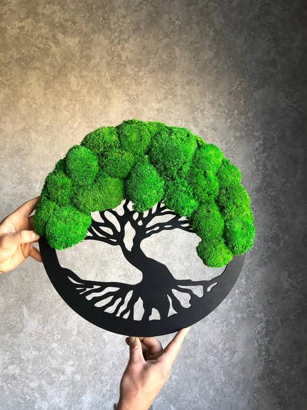 MiNature Moss - це студія вертикального озеленення стабілізованим мохом та рослинами. Дерево панно зі стабілізованим мохом затребуваний товар, який зробить акцент у вашому інтер'єрі, додасть свіжості, унікальності. *Діаметр дерева можливо замовити від 40 см до 120 см. Матеріал: фанера та стабілізований Кочковий мох Розмір: діаметр 40 см Стабілізований мох-це справжня знахідка, адже за ним не потрібно доглядати, від слова зовсім. Переваги моху: -зберігає насичений колір та природну м'якість до 10ти років -гіпоалергенний; -має антистатичну поверхню (за рахунок гліцеринового розчину в якому він вимочується, пил на ньому не накопичується) -його не потрібно обприскувати, поливати; -Не вимагає освітлення; -в ньому не заводяться комахи, різні шкідники та пліснява Головні поради для продовження терміну експлуатації моху: - не мох під пряме сонячне проміння якщо мох щодня світитиме сонце, він швидко вицвіте - У приміщенні не повинно бути холодно чи спекотно якщо температура нижче +4 або вище +35 градусів, мох швидко висохне. - не розміщуйте мох біля нагрівальних приладів (кондиціонерів, батарей, навіть теплої підлоги) відстань від приладів має бути від 1 м-коду. - не мочіть і не обприскуйте водою якщо мох намочити з поверхні змиється розчин, таким чином він буде сохнути і втрачати колір - Підтримуйте вологість повітря 40-70% вологості якщо вологості у приміщенні недостатньо, її можна підвищити зволожувачем повітря - Забирайте пил з поверхні раз на 4-6 місяців делікатним рухом щіткою для пилу або холодним струменем повітря фена У нас ви отримуєте: _Кращу ринкову ціну _Якісний продукт _Детальну консультацію _Надійні упаковки _Стильний декор, який нікого не залишить поза увагою Ручна робота яку ми робимо якісно, надовго!