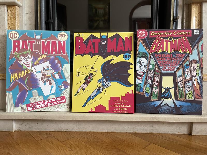 🦇 Ідеальний подарунок для фанатів коміксів та супергероїв! 🎨 Продаю набір із трьох стильних постерів у ретро-стилі, натхненних класичними обкладинками коміксів DC про Бетмена. Яскравий і насичений дизайн прикрасить будь-яку кімнату: дитячу, вітальню, кабінет або ігрову зону. 📌 У комплекті: 1. Batman vs Joker – “Look out, Gotham! The Joker’s back in town!” 2. Batman No.1 – З легендарною обкладинкою першого випуску коміксу з Бетменом і Робіном. 3. Detective Comics – Галерея ворогів Темного Лицаря. 📏 Розмір кожного постера: 40 × 30 × 2 см (натягнуті на дерев’яну рамку – готові до розміщення на стіну) 🖼️ Матеріал: Друк на полотні (canvas), натягнутий на підрамник. Задня сторона акуратно оброблена. Постери легкі та зручні у розміщенні. 💰 Ціна: • Набір із 3-х постерів – 600 грн 📦 Відправка: Нова Пошта, Укрпошта. Добре упаковую. Самовивіз можливий у [вкажіть ваше місто].