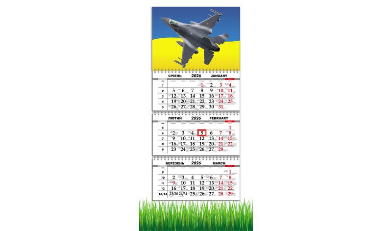 Календар настінний квартальний на 2026 рік на три пружини , Apriori , Літак F16 , Прапор України , Патріотичний календар , український сувенір , 29,7х61см , КАЛЕНДАР 2026 , Плануйте із задоволенням! Настінний календар з атмосферною ілюстрацією -- створює затишну, натхненну атмосферу у вашому домі чи офісі. Цей настінний календар 2026 поєднує в собі естетику та практичність: одночасне відображення трьох місяців (попереднього, поточного та наступного) робить планування максимально зручним. Виділені святкові й вихідні дні допоможуть краще організовувати свій час. Календар настінний квартальний на 2026 рік на три пружини - Ідея для подарунка, стильне рішення для колег, друзів або рідних Ексклюзивна ілюстрація Такий календар на 2026 рік буде гармонійно виглядати в будь-якому інтер'єрі: вдома, в салоні краси, офісі, коворкінгу чи арт-просторі. КАЛЕНДАР НА 2026 РІК Настінний квартальний календар на 3 пружинах Розмір виробу: 297х610 мм, виготовлений з білого картону 300 г/м² Розмір блоків: 297х140 мм, виготовлені з матового крейдованого паперу 90 г/м² Календарна сітка двома мовами: українською, англійською (із зазначенням святкових дат двома мовами) Комплектується курсором (вказівником дати) та отвором для кріплення з металевим люверсом Календар на 2026 рік - чудова ідея для подарунка. Календар для офісу та для дому. Свята всі державні, релігійні та професійні вказані двома мовами українською та англійською мовами, за новим стилем. Календар на трьох пружинах, настінний календар з курсором (бігунком) (покажчик дати) Зручний настінний бухгалтерський календар 2026 року! Робочий календар 2026 Україна, настінний календар 2026, перекидний календар 2026, Подаруйте собі натхнення та стильне планування кожного дня з календарем на 2026 рік! Ідеально підходить для себе або як корисний подарунок! Календар 2026- подарунок на цілий рік!