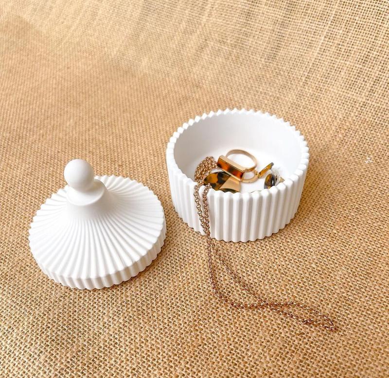 шкатулка из гипса. подходит для хранения бижутерии и небольших украшений\ предметов. прекрасной подойдёт для украшения интерьера , так же в качестве предмета фотосессии. размеры : высота 9см , ширина 8 см, высота без крышки 3.5 см примерный обьем 175мл цвет : белый цвет изделия может немного отличаться от фото