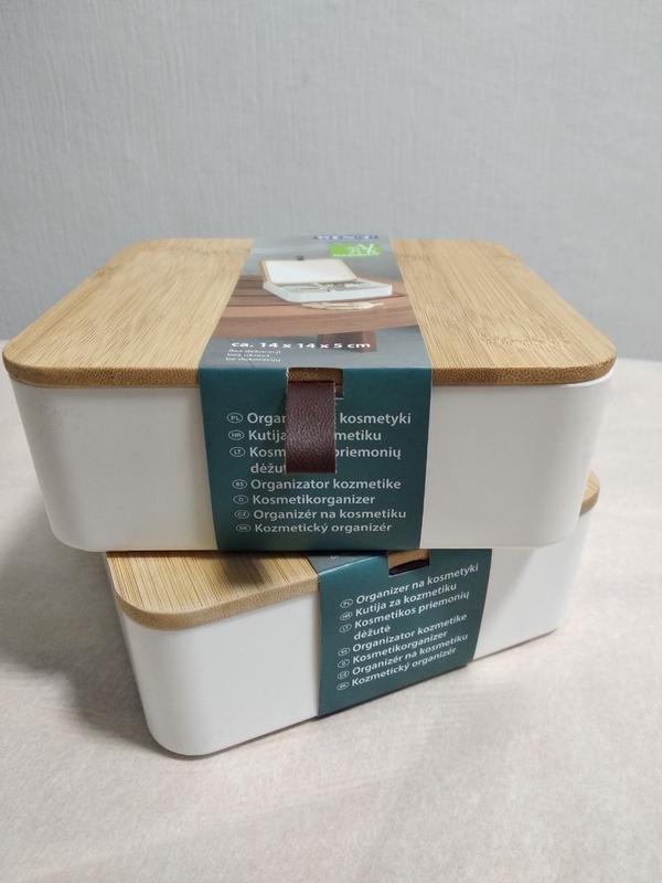 Сучасний органайзер для ванної кімнати в елегантному білому кольорі. Розмір: 14 x 14 x 5 см Ціна вказана за одиницю, на дві буде знижка) З 3 практичними відділеннями для косметики, прикрас, лаку для нігтів, пінцета тощо. Кришка захищає від пилу і дивиться всередину З вбудованим дзеркалом - ідеально підходить для укладання та макіяжу Ідеальний розмір для будь-якого місця в домі - коробка також є незамінним супутником у подорожах