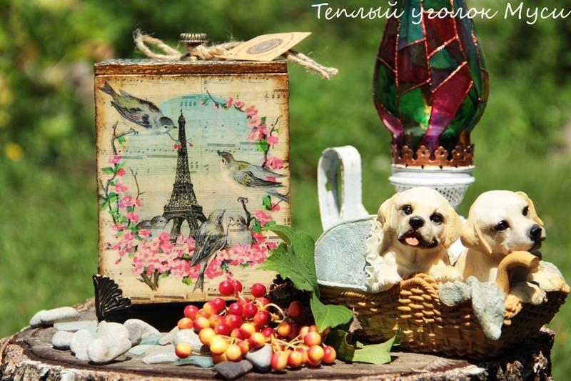 Неможливо уявити собі сучасну жінку без милих дрібниць і біжутерії, і навіть у тієї жінки, яка не дуже любить прикраси, все одно просто дивом з'являються різні ланцюжки, каблучки, сережки, браслетики, які необхідно зберігати. Представляю вам короб для зберігання біжутерії та інших милих жіночих дрібничок "Вікно в Париж" Розмір короба 15х12 см, основа МДФ, він дуже гарний, елегантний і місткий.