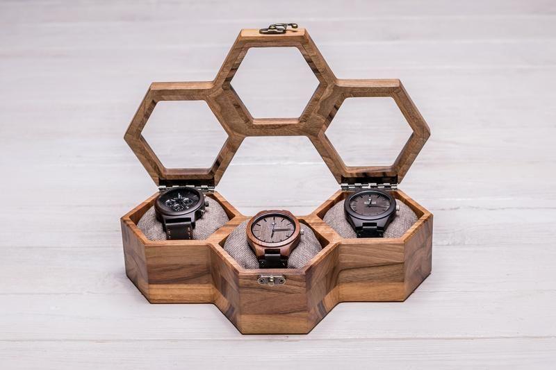 EB-16.3.1 Сотові скриньки для 3 годинників зі скляною кришкою Представляємо Вашій увазі нові преміальні скриньки для зберігання на подушечках наручних годинників. Комбінація з бджолиних сот у залежності від кількості комірок робить виріб новим, унікальним і незвичайним органайзером серед нашого асортименту. Дані коробочки розроблені у різній конфігурації (від 1 пари годинників до 10). Деревина волоського горіха надає виробу преміального вигляду, якісна металева фурнітура грамотно підібрана під розмір і додає елегантності даним скринькам. Завдяки використанню ексклюзивної деревини, металевих (а не пластикових) кріплень, скла (а не акрилу), дорогої тканини та натуральних олій цей виріб буде дуже цінним і коштовним подарунком для будь-якої людини, котрій важливий комфорт та порядок в особистому просторі. Залежно від кількості комірок коробочки комплектуються подушечками для годинників із приємної на дотик тканини та якісних матеріалів, що робить виріб довговічним та зручним у використанні. На відміну від інших скриньок нашого виробництва, у сотових скриньках кришка фіксується вертикально, що також є унікальною особливістю цих виробів. Внутрішній розмір комірки: 80 мм між паралельними ребрами шестигранника, 68 мм – висота комірки. Цього більш ніж достатньо навіть для найбільших годинників, тому вони точно не торкатимуться кришки скриньки. У нашому асортименті також представлені ідентичні коробочки з дерев'яною кришкою. Розмір в залежності від кількості комірок: 1 - 109x94x78 мм; 2 - 188х109х78 мм; 3 - 271х141х78 мм; 4 - 271х235х78 мм; 5 - 271х188х78 мм; 6 - 434х188х78 мм; 7 - 597х141х78 мм; 8 - 597х188х78 мм; 9 - 597х188х78 мм; 10 - 597х235х78 мм. Виріб продається в акуратній картонній коробці, придатній для вторинної переробки. За бажанням клієнта ми + можемо вигравірувати Ваші ініціали, улюблену цитату чи логотип компанії у будь-якому місці на нашому продукті (і на дереві, і на склі) або навіть змінити його конструкцію на Ваш запит. Окрім цього, ми обернемо Ваше замовлення в подарункову упаковку або вкладемо листівку з Вашим повідомленням, якщо Ви нас про це попросите. Зверніть увагу: колір Вашого продукту може трохи відрізнятися від зображення, оскільки кожен виріб має індивідуальні та унікальні характеристики та особливості деревини. Щодня надсилаємо замовлення Укрпоштою (безкоштовно від 2000 грн) або Новою Поштою (безкоштовно від 4000 грн). Матеріал: високоякісна оброблена деревина волоського горіха, просочена натуральною олією. Зроблено в Україні за стандартами eco-продукції. Додаткові характеристики: Стать: Жіночий Стать: Чоловічий Призначення: Для грошей Призначення: Для запонок Призначення: Для кілець Призначення: Для косметики Призначення: Для рукоділля Призначення: Для прикрас Призначення: Для годинника Матеріал: Дерево Персоналізація: Іменна Персоналізація: З гравіюванням