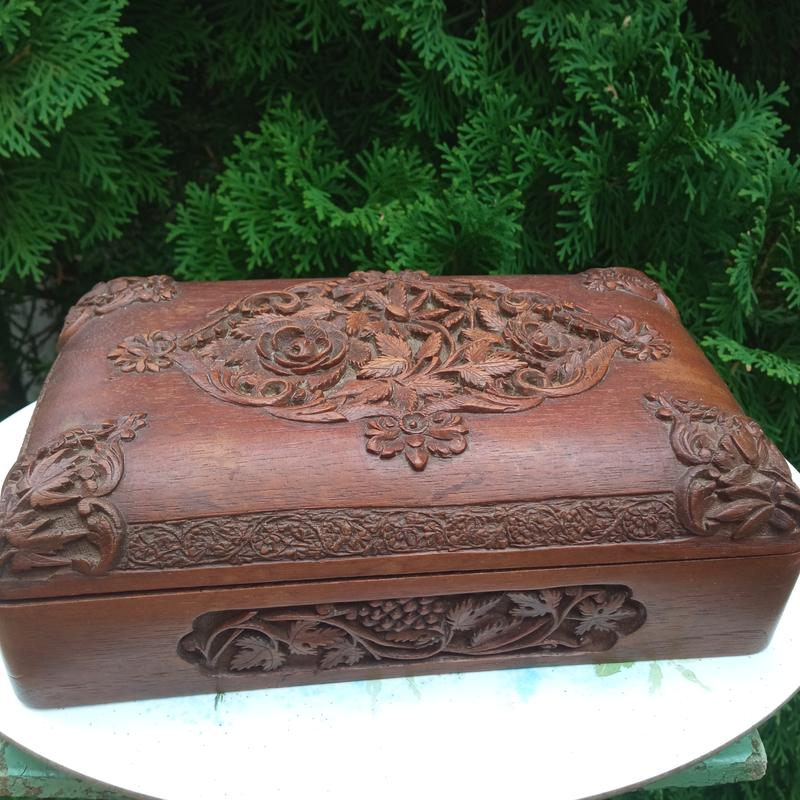 Шкатулка из красного дерева полностью резная в отличном состоянии