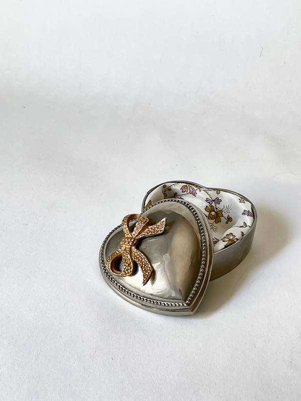 Наявність 1 шт Стан: дуже хороший, є вікова патина (додає вінтажної естетичності) Матеріал: нержавіюча сталь, тканина Розміри висота 4,5, ширина 7 см Ця чарівна скринька — справжня знахідка для поціновувачів вінтажу. Виготовлена з металу з витонченим патинованим покриттям, вона зберігає в собі дух минулої епохи. Декорована красивим металевим бантиком. Всередині — тканинна вкладка для каблучок, м’яка на дотик та ідеально зберігає форму прикрас. Скринька невелика, компактна, але вмістка — чудово підійде для зберігання найцінніших дрібниць: каблучок, сережок або пам’ятних дрібничок. Може стати ідеальним подарунком для любителів ретро, романтичним елементом інтер’єру або ж унікальним аксесуаром для фотозйомки. Працюю з безпечною згодою тільки по передплаті ( якщо вас цікавить дана опція - будь-ласка без торгу) Накладений платіж (наложка) для Нової Пошти по передплаті 200 грн Укрпошта (виключно повна передплата) і не всі вироби відправляю. Надійне пакування. Бронь 1 доба Роблю відеоогляди.