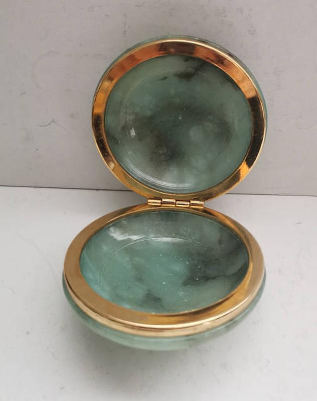 Вінтажна шкатулка в ідеальному стані Висота 4 см Алебастр — це мінерал, що складається з гідратованого сульфату кальцію (гіпсу). Його часто використовують для виготовлення декоративних виробів, таких як скриньки, вази та скульптури, оскільки він м'який і легко піддається різьбленню