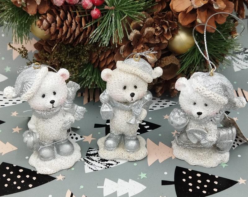 Ведмедик матеріал кераміка висота 8,2 см, можна підвищувати 6 видів, ціна вказана за одиницю, колір білий з сріблом