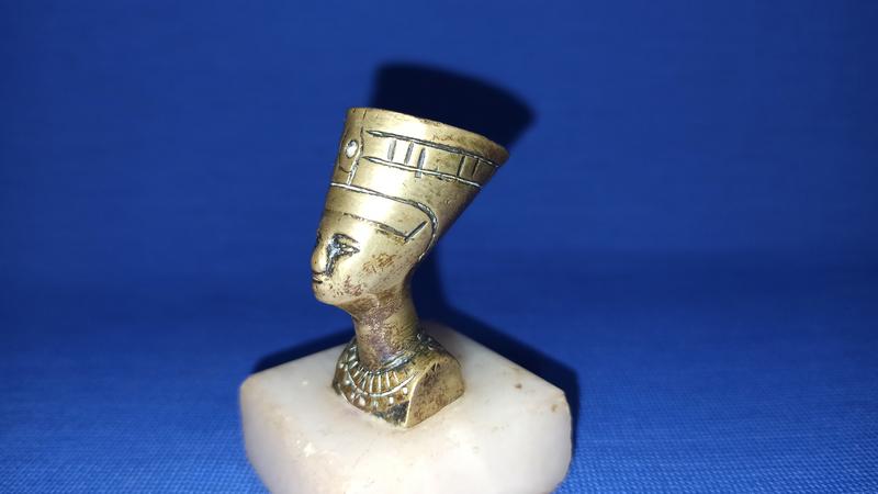 Винтажный бюст Нефертити латунный или бронзовый на белой мраморной подставке. Размер бюста 4,5 см, подставка 2 см