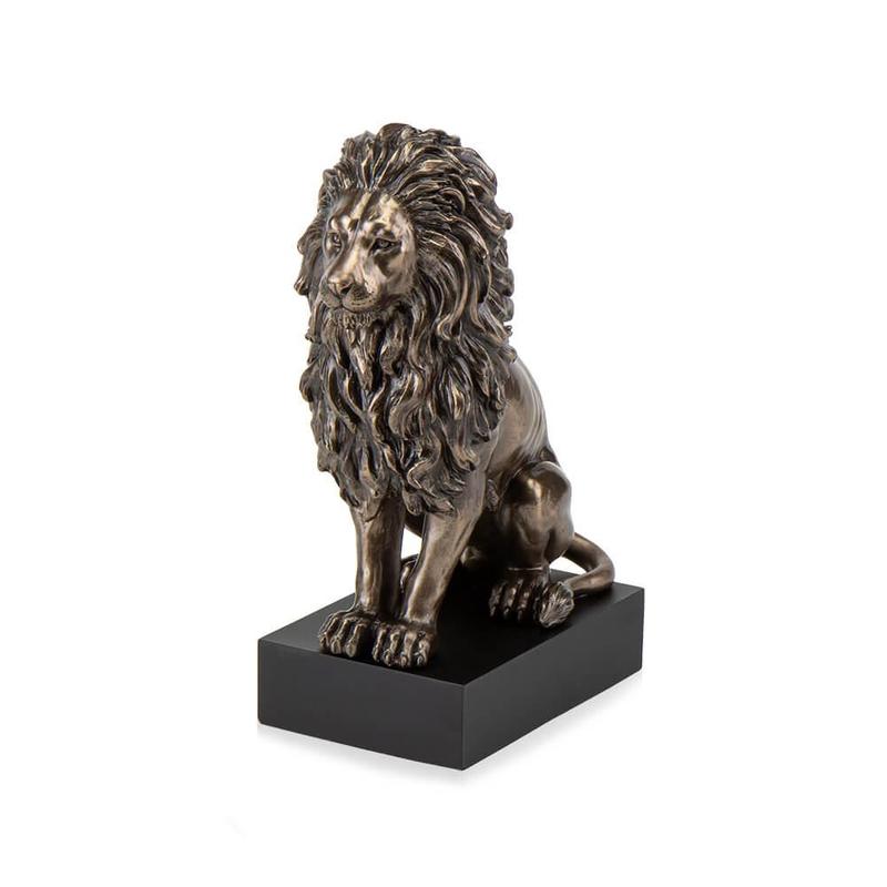 Чудовим подарунком стане статуетка лева виконана відомими майстрами бренду Veronese. Лев символізує владу, силу, справедливість, захист. Всі великі правителі шанували цю тварину, часто використовували статуї левів на вході до житла та біля підніжжя трона. Статуетка лева підійде на подарунок главі сім'ї, керівнику компанії, колезі, другу, тому хто за знаком зодіаку лев або якщо людину звуть Лев. Така статуетка принесе своєму власникові впевненість, рішучість, сміливість. Статуетка виготовлена з полістоуну (штучного каменю) та покрита бронзовим напиленням. Запакована в красиву подарункову упаковку. Так що, купуючи цю статуетку, ви купуєте цінний і красивий подарунок, який не вимагає доповнення.
