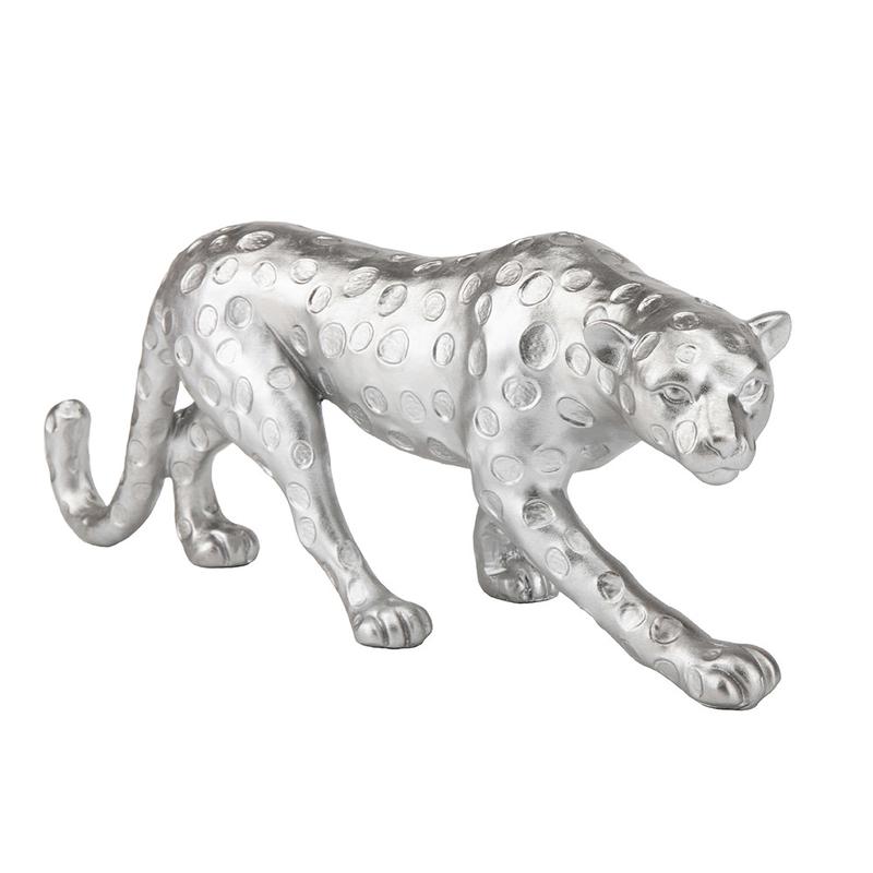 Декоративна леопардова фігурка - це витончена, вишукана фігура зі сріблястого полістоуну, яка ідеально підходить для подарунка творчій природі, друзям, колегам. Це буде чудовий сувенір в офісі і у вашому будинку - на полиці, каміні, стільниці в їдальні або вітальні. Фігурка дуже красива і має пристойний, благородний вигляд. Цифра стоїть стабільно.