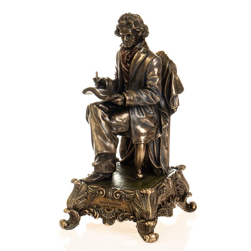 Найбільше явище у світовій культурі, новатор, людина став легендою ще за життя, який вплинув на розвиток мистецтва. Людвіг Ван Бетховен був неймовірно талановитим та цілеспрямованим, навіть втративши слух, продовжував створювати свої геніальні шедеври. Виріб виготовлений із полістоуну (штучний камінь), покритий напиленням із бронзи; та упаковано в подарункову коробку, що надає йому престижності та розкоші. Завдяки надійній упаковці, виготовленій із пінопласту з поглибленнями для найменших деталей, Ви можете бути впевненими у безпеці при транспортуванні.