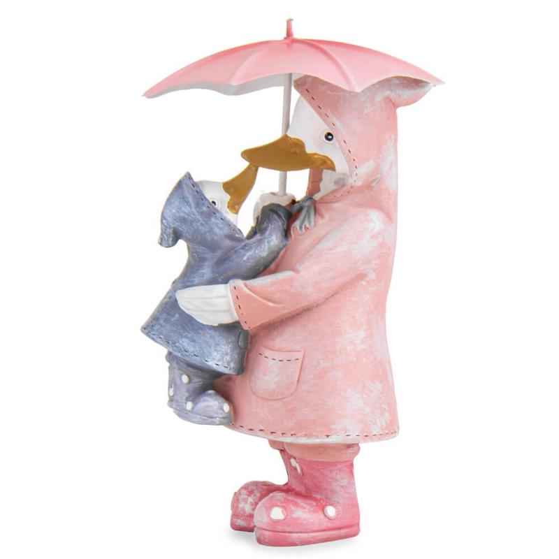 Це фігурка з полістоуна, що зображує качину родину під дощем. Статуетка виповнена у нюдових кольорах. Ця статуетка створюює чудову атмосферу ніжності та любові. Це чудовий варіант подарунку. Парасолька знімна.
