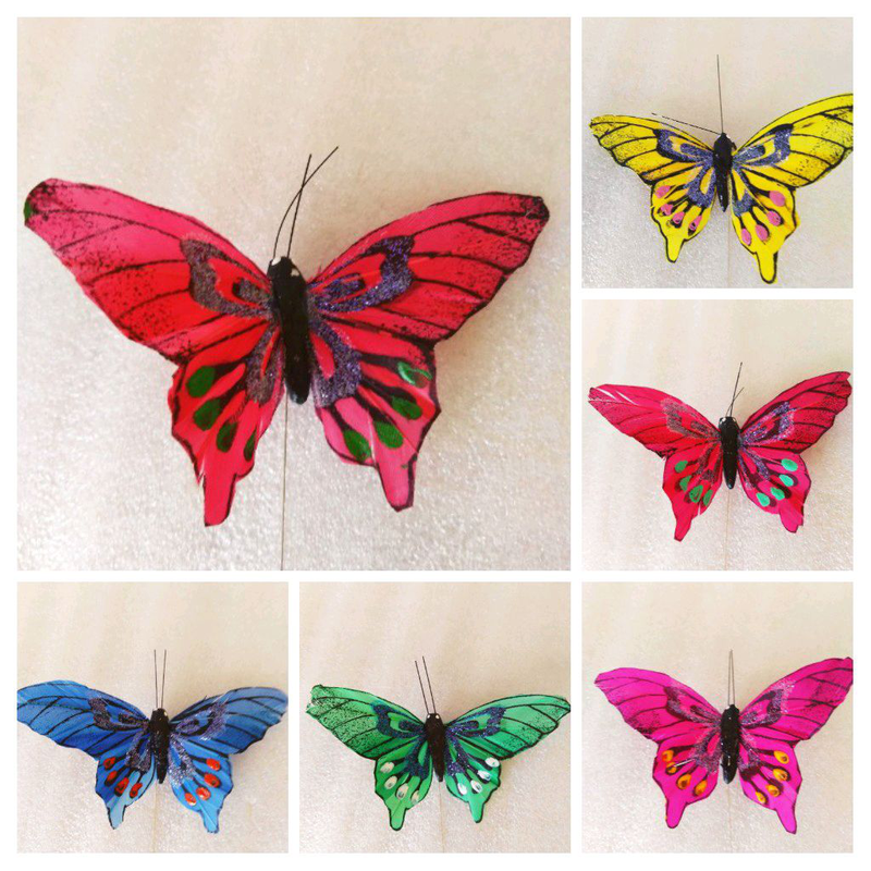 Тип аксесуара: Інший тип аксесуару Кілька примірників у наявності Різнокольорові метелики (6 кольорів) Натуральні пір'я пофарбовані. Розмір 10 см. На тонкому дроті довжиною 18 див Декоративні метелики для букетів і рослин оселившись у вашому домі будуть довго нагадувати про свято! Ціна за 1 штуку.