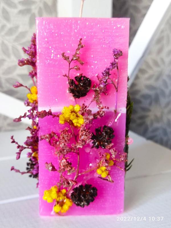 Тип аксесуара: Свічки Ботаническая свеча с сухоцветами и травами. Ароматизирована. Эта уникальная свеча ручной работы будет замечательно смотреться в любой обстановке и добавит завершающий штрих в любую комнату. Высота 11 см, ширина 5 см, время горения 15 часов. Вес 250 грамм. Эта свеча горит внутри, оставляя нетронутыми внешние украшения. Выкройки могут незначительно отличаться, так как все свечи изготавливаются вручную. Это отличный подарок друзьям и близким. Свеча будет тщательно упакована и отправлена. Не стесняйтесь обращаться ко мне с любыми вопросами, которые могут у вас возникнуть! Правила пожарной безопасности при свечах: · Всегда держите горящую свечу в пределах видимости. · Выходя из комнаты, гасите все свечи. · Никогда не зажигайте свечу на предметах, которые могут загореться или рядом с ними. Держите зажженные свечи вдали от мебели, занавесок, постельного белья, ковров, книг, бумаги, легковоспламеняющихся украшений и т.д. · Храните горящие свечи в недоступном для детей и домашних животных. · Всегда используйте подсвечник, специально предназначенный для свечей. Держатель должен быть термостойким, прочным и достаточно большим, чтобы в него не попали капли или расплавленный воск. · Убедитесь, что подсвечник установлен на устойчивой термостойкой поверхности. · Никогда не касайтесь и не перемещайте горящую свечу или свечу из контейнера, когда воск жидкий. Материалы: Парафин П-2, стеарин, ароматизатор Рекомендации по уходу или хранению: Храните горящие свечи в недоступном для детей и домашних животных месте. Размер: Высота 11 см, ширина 5 см, время горения 15 часов. Вес 250 грамм.