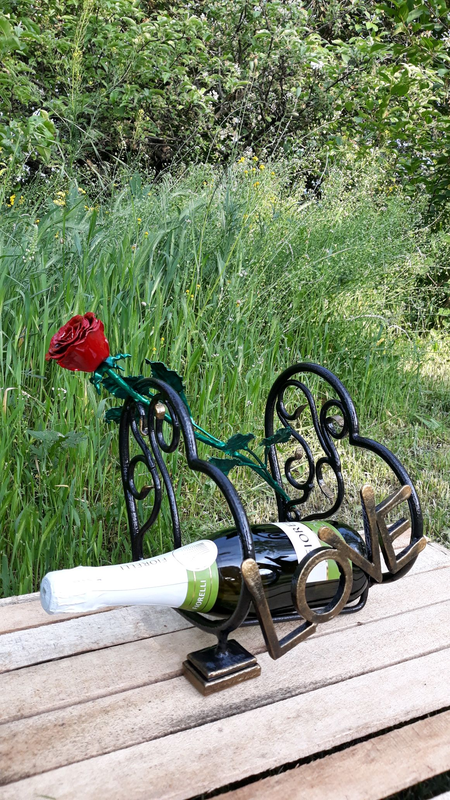 Тип аксесуара: Інший тип аксесуару Данна підставка для пляшки виконана в формі серця яку прикрашає роза.Все прогрунтоване та окрашено в чорну молоткову фарбу.В цю підставку також можна вставляти інші напої.Ціна підставки 1250грн.Без пляшки.Також можна зробити підставку під замовлення яку ви забажаєте.Дивіться інші мої оголошення