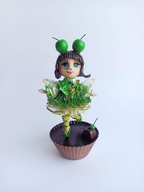 Декоративна статуетка дівчина-кексик Яблунька. Також є варіація у червоному кольорі з вишнями. Розмір 9 на 16 см