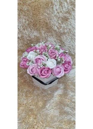 Виробник: Власне виробництво Тип аксесуара: Інший тип аксесуару Букет який не зав′яне роками!!! Порадуйте Ваших рідних, навіть якщо Ви далеко один від одного. Я з задоволення Вам в цьому допоможу. Якщо бажаєте чарівний букет, звертайтеся обов′язково. Така композиція буде прикрашати приміщення та нагадувати про Вас дуже багато років. Квіти виготовлені з мильної основи, всі пелюстки м′ягесенькі та приємні на дотик, а аромат не навязливий та дуже приємний. Букет з 23 троянд та штучної зелені.