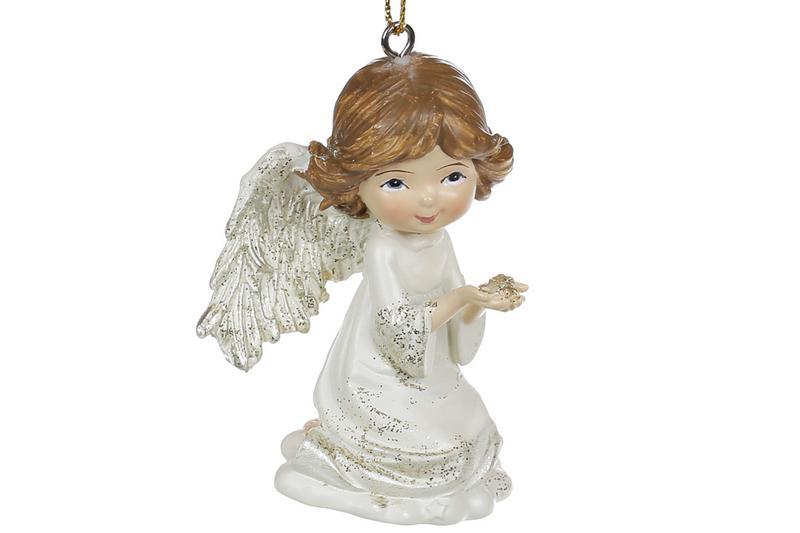 Декоративна підвіска янгол, 6.5см, колір - білий із шампанню, 6шт