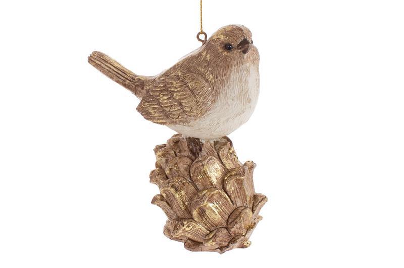 Набір (4шт.) декоративних підвісних фігурок пташка на шишці, 1...