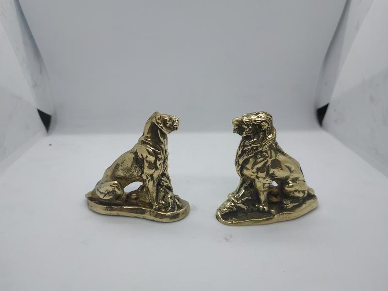 Лев з Видобутком і левиця з дітьми, бронза мініатюра, розміри 53мм на 50мм на 36 мм, цілісні.