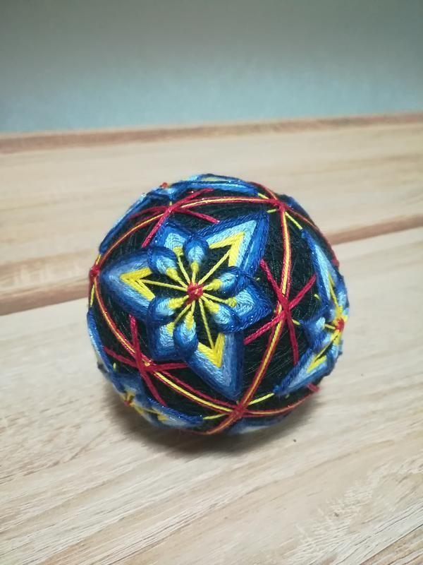 Оригінальний текстильний куля темарі ручної роботи. Використовується як предмет декору, сувенір, оберіг і талісман.