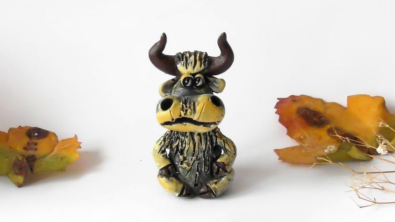 Авторська, керамічна фігурка у вигляді бичка, символу 2021 року. (4x6.5см) Товар виготовляється на замовлення